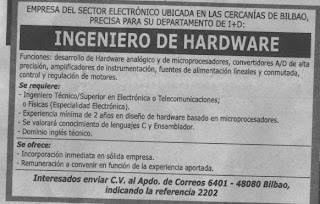 telekomunikazio ingenieriak lan merkatuan behar diren ezaugarri bezala, detektatzen ditugun lan eskaintzak jarriko ditugu hemen. Asteburu honetan hiru agertu dira orrialde batean eta hemen jartzen ditugu, inor interesatua badago, bere kurrikuluma bidali dezala.