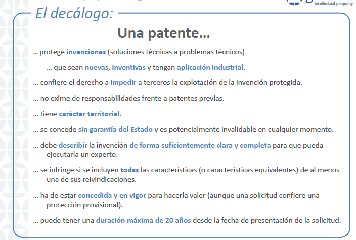 Figura 1: El decálogo de una patente (por Ismael Igartua, Galbaian)